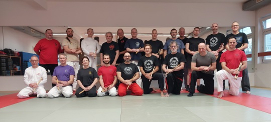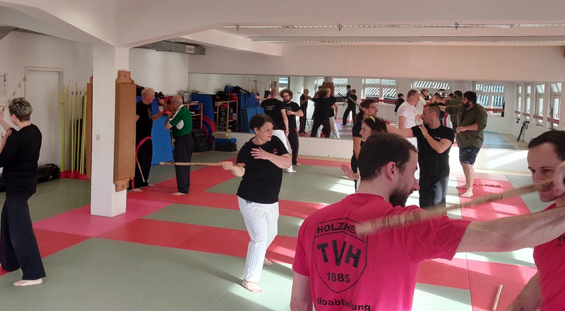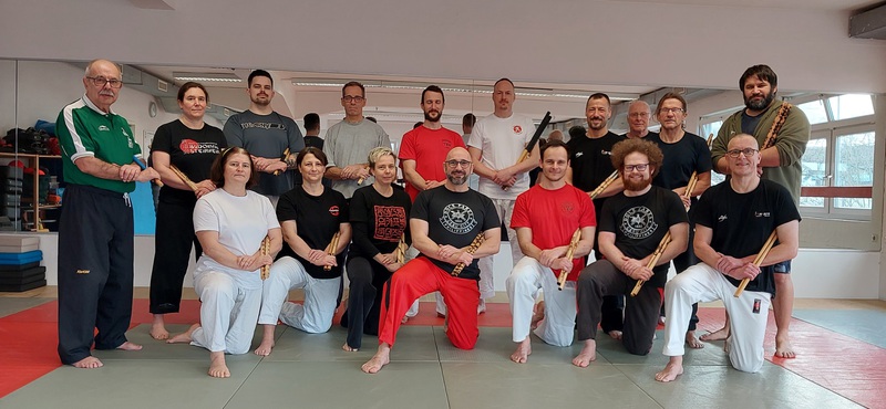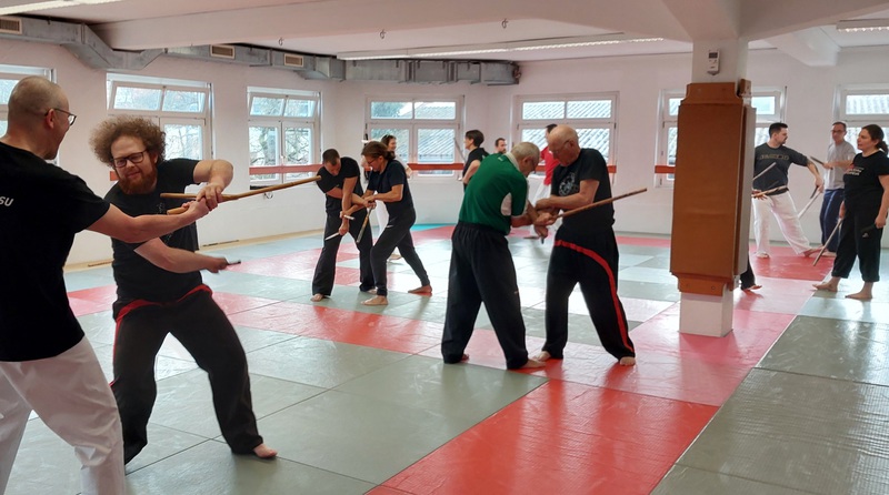 Entwaffnungstechniken mit dem Stock, Stockhebel und andere Techniken trainiert. Die Teilnehmer hatten sichtlich viel Spaß und die Zeit verging wie im Flug.